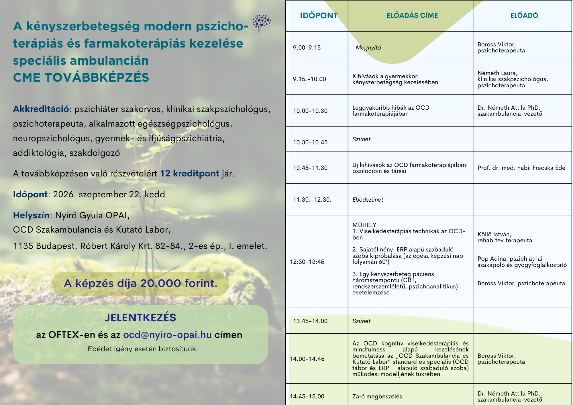 Az OCD pszichoterápiás táborba azok tudnak jelentkezni, akik elvégezték a Nyírő Gyula